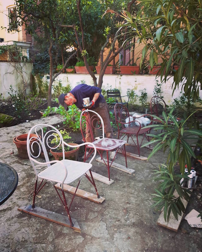 Покраска стульев в саду