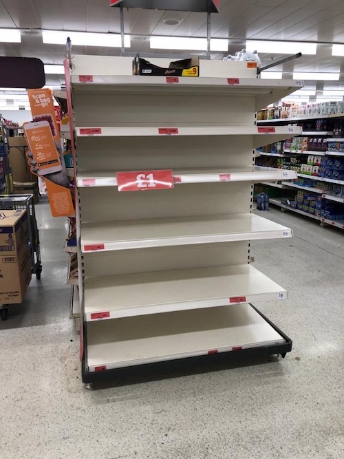 Пустые полки — туалетная бумага и санитайзер в дефиците