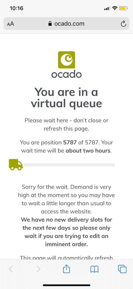 Утром меня разбудило сообщение от подруги, которая уже несколько дней сидит взаперти, потому что ее университет закрыли из-за случая заражения: «Ты не поверишь, я стою в очереди на сайт, чтобы заказать продукты. Следующий слот через три недели, а со мной здесь 5 000 человек».