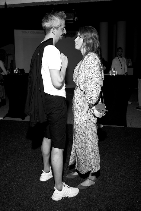 Да что там титаны? Молодая кровь тоже предпочитает на модные показы — через черный вход. Как это делает, к примеру, дочь ресторатора и адепт здорового питания Саша Новикова и ее бойфренд рэпер Федук.