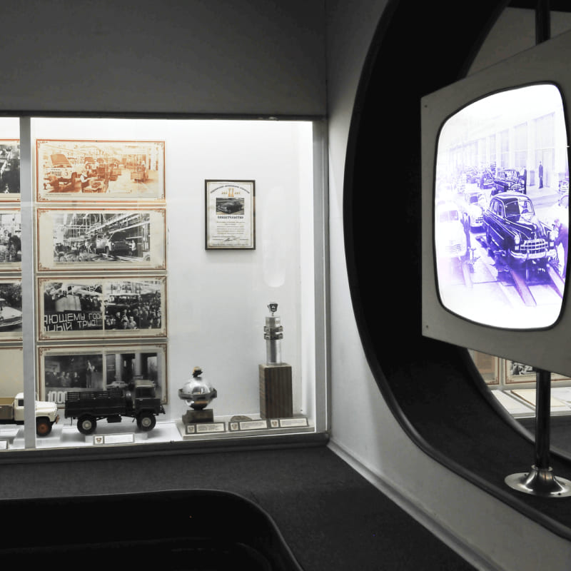 Выставка достижений Горьковского автомобилестроения от легендарных довоенных «эмок» (на них ездили сотрудники НКВД), военных полуторок, которые прорывались в блокадный Ленинград, до современных «газелей» и роскошных ретро — «Чаек» и «Волг». На втором этаже — история завода в фотографиях и документах.