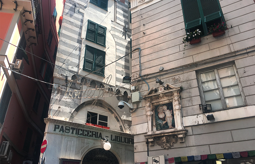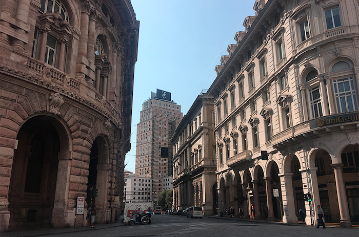 Здесь можно уловить типичные для средиземноморских городов мотивы, знакомые на всем побережье от Ниццы до Триеста. В главной площади — Пьяцце Де Ферррари — есть что-то от триумфальной атмосферы Милана. Отсюда же открывается вид на блистательный пример фашистской архитектуры времен Муссолини — 108-метровую башню Torre Piacentini, которая была самым высоким небоскребом в Европе до 1952 года (до появления нашей высотки на Котельнической). Если обойти вокруг фонтана на площади, то между имперскими зданиями промелькнет старый город с обшарпанными желтыми и оранжевыми домами, за которые все любят Италию.