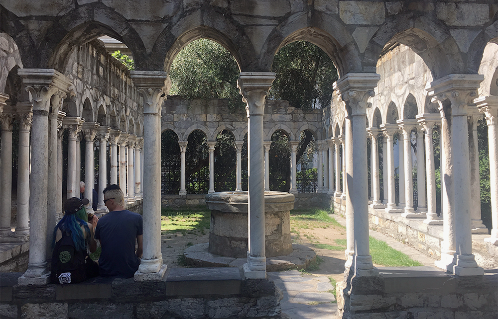 К слову о внутренних дворах: знать настолько ужаснула мысль о том, что ее богатство увидят простолюдины, что многие здания в городе соединили закрытыми мостиками. Дамы и господа могли ходили друг к другу в гости, не показываясь на улице. А отдыхать они предпочитали в тайных садах с идеально подстриженными кустами, увидеть которые с улицы было невозможно. Зато вы теперь можете проложить на картах гугла маршрут по улицам Бальби, Сан Люка, Ломеллини и той же Гарибальди, чтобы сделать сотню-другую сторек из 42 генуэзских дворцов, — все вместе они называются Palazzi dei Rolli. В этот корпус не входит еще один примечательный дворец — Герцогский, где проводят выставки современного искусства (эти летом там выставляли Джорджо Де Кирико).