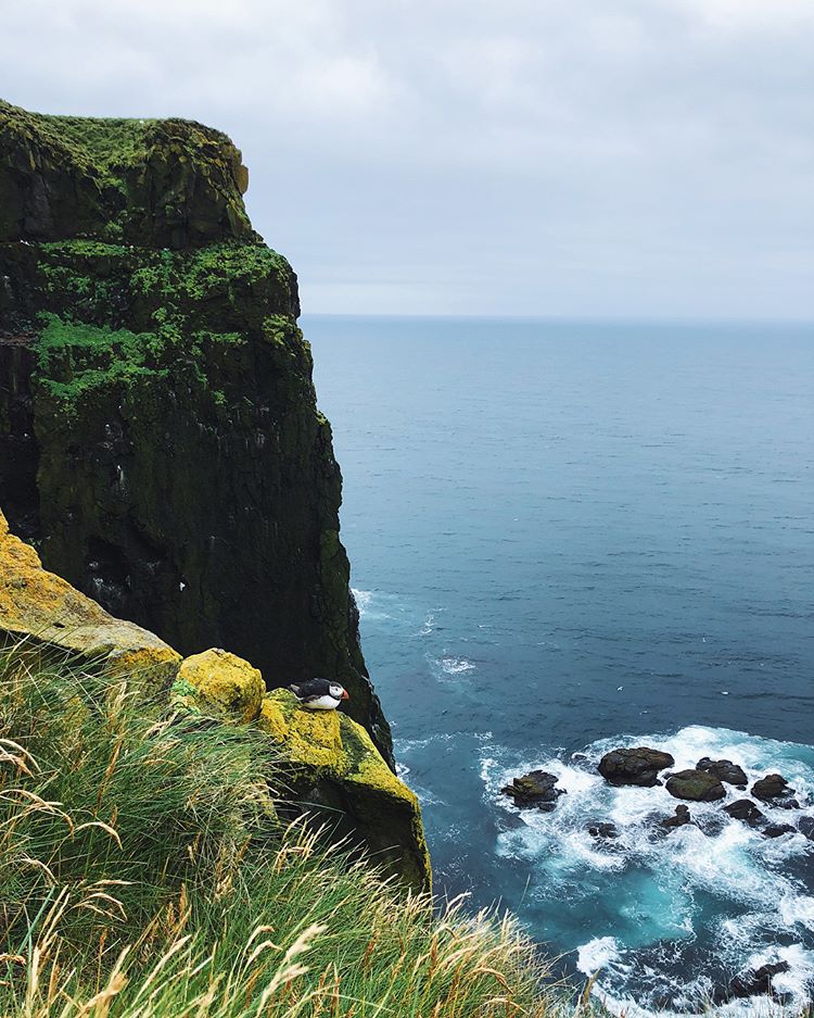 Скала Лаутрабьярг (Látrabjarg). Самая западная точка Европы. 14 км сплошных утесов высотой 440 м, место обитания самой большой колонии тупиков. Мы увидели всего одного тупика, но он оказался очень милым и терпеливо позировал нам для фото.