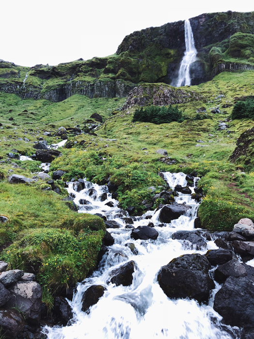 Водопад Бьярнарфосс (Bjarnarfoss). Абсолютно спонтанная и от этого еще более приятная находка по дороге в отель. Я никогда не могла подумать, что водопады могут так по-разному звучать и выглядеть.