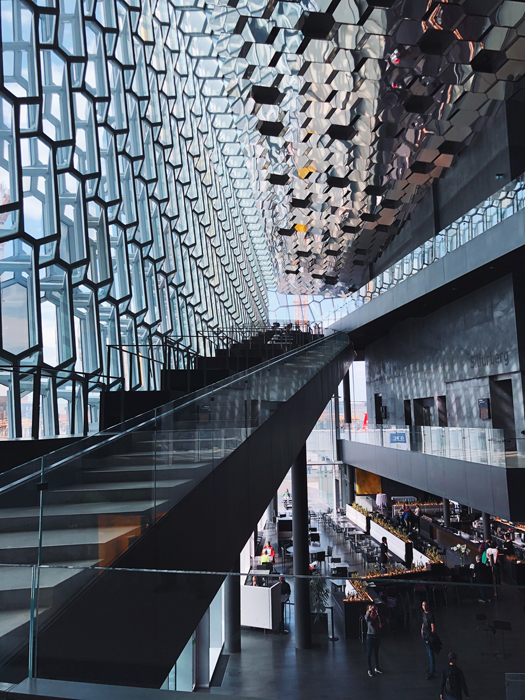 Концертный зал «Харпа» (Harpa Concert Hall). В стальной каркас стен вставлены стеклянные панели, напоминающие соты. Внутри здания создается ощущение легкости и невесомости. Мы вспомнили, что цветные стекла концерт-холла «Харпа» и несколько улиц Рейкьявика появляются в «Черном зеркале» (3-й эпизод 4-го сезона).