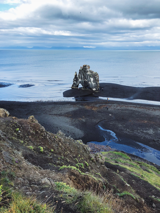 Скала-слон Хвитсеркюр (Hvítserkur) достигает 15 метров в высоту и стоит практически в воде на пляже с черным песком. Когда я увидела ее, вспомнила сразу все фильмы Кристофера Нолана.