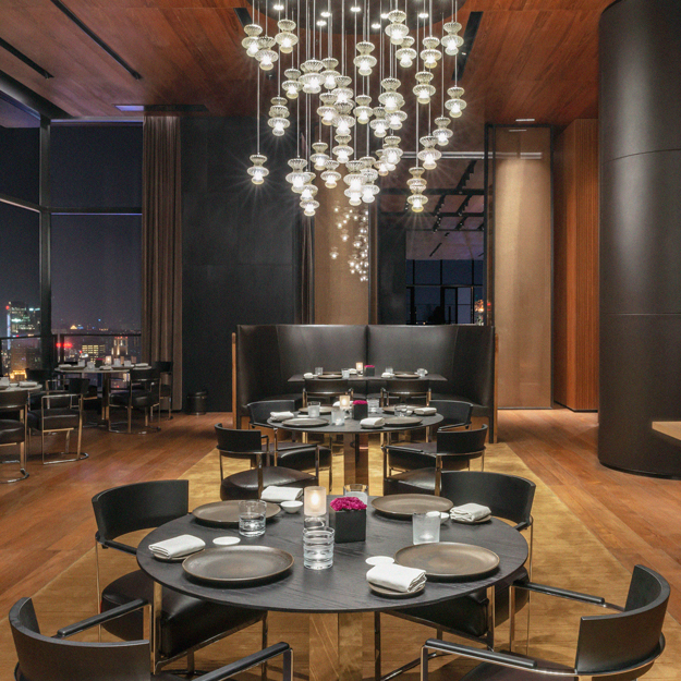 На земле ресторан тоже есть: помимо свежепостроенной башни в 48 этажей Bvlgari отреставрировала старое здание Торговой палаты, которая стоит на территории отеля с садом вокруг, аллеей и классического стиля въездной аркой, сделанной по мотивам римской арки Константина. В нем устроили бальную залу и открывают гастрономический ресторан именно китайской кухни — Bao Li Xuan.