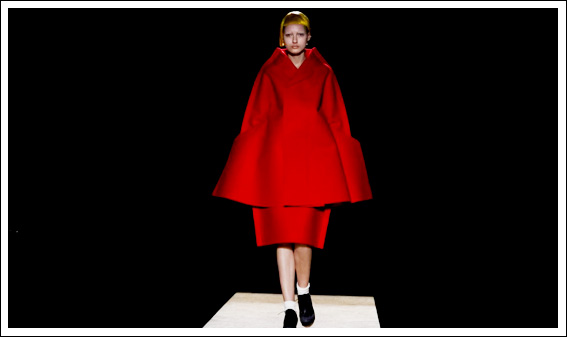 Внимание: марка Comme des Garcons задает новый тренд в выборе музыки для модных показов, а именно ее отсутствие. Больше половины шоу модели выходили на подиум в тишине: слышны были только неугомонные вспышки фотокамер и стук деревянных каблуков. Этот прием работает довольно хитро — зрители находятся в ожидании "настоящего шоу" и прямо-таки не могут оторвать от подиума взгляда. Браво!