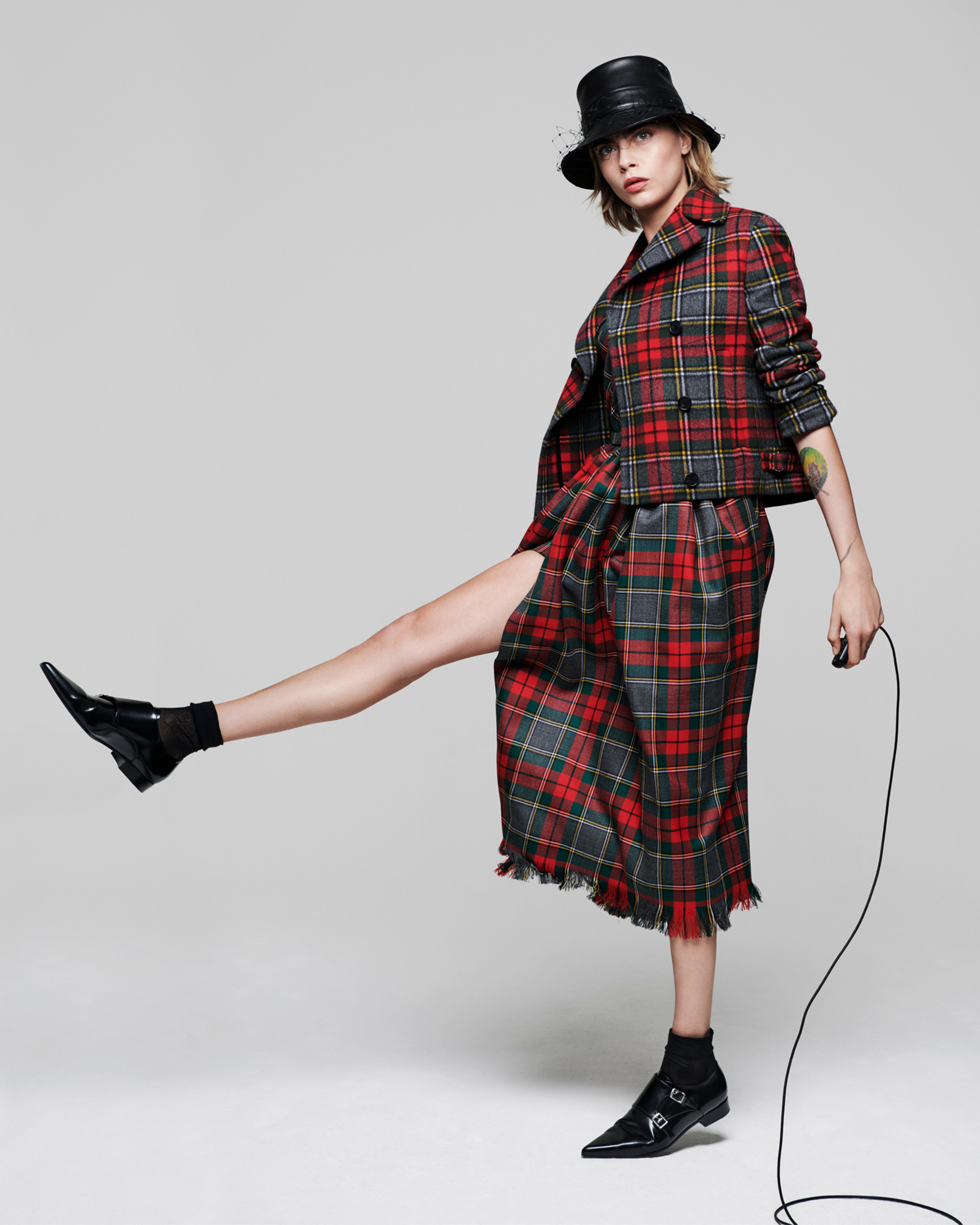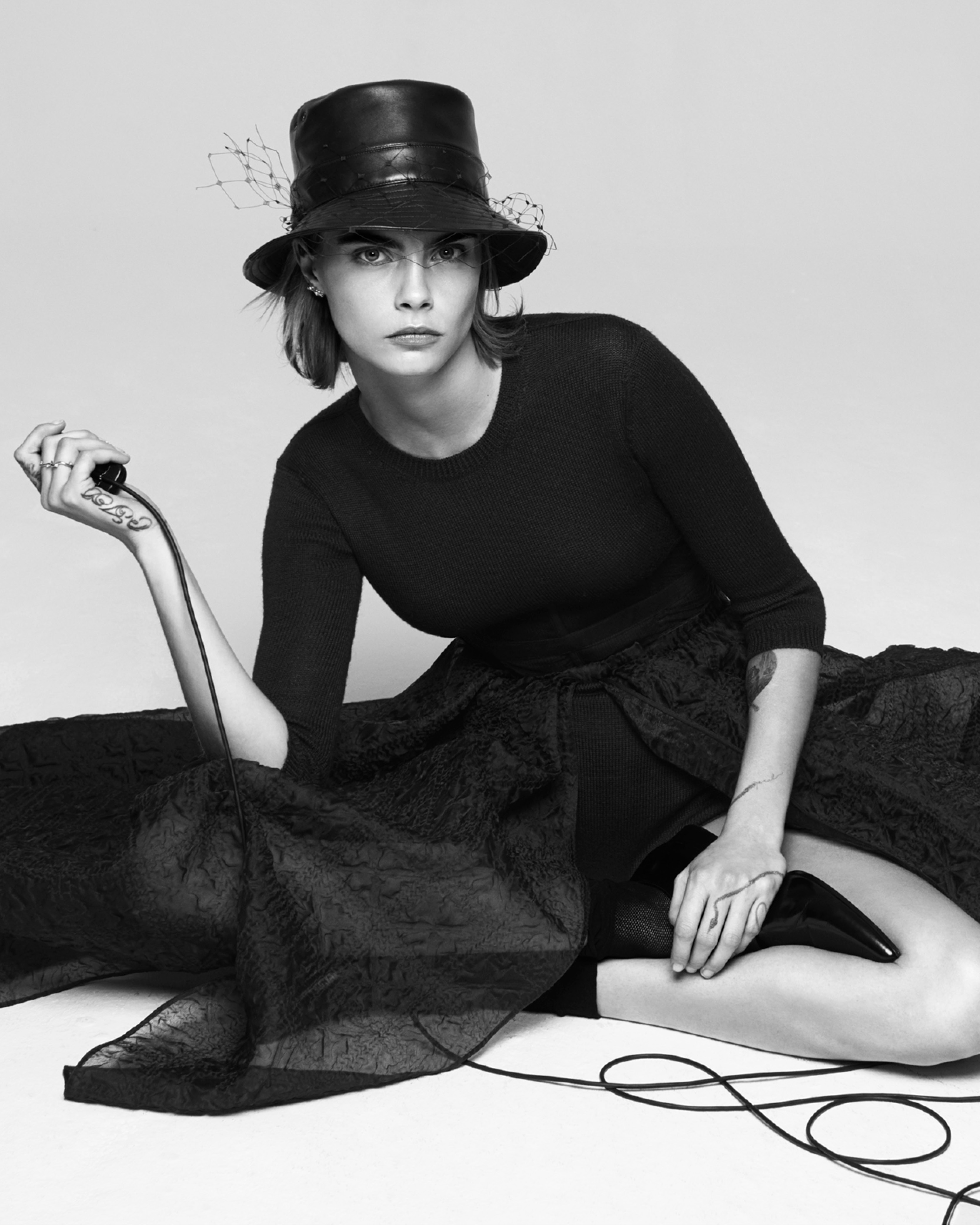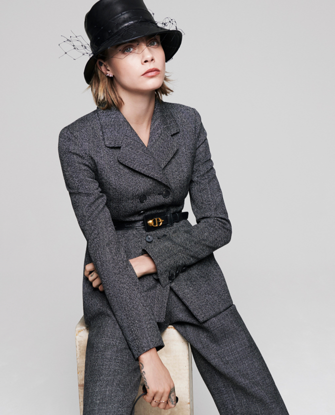 В феврале Кара Делевинь стала новым лицом линии помад Dior Addict Stellar Shine с пятью маслами и натуральным пчелиным воском. Теперь в рамках сотрудничества с бьюти-подразделением французского дома британская модель сделала серию своих автопортретов в вещах из осенне-зимней коллекции бренда авторства Марии Грации Кьюри. На снимках она позирует в клетчатых платьях, остроносых ботинках, кожаной панаме с вуалью и с помадой персиково-розового оттенка на губах.