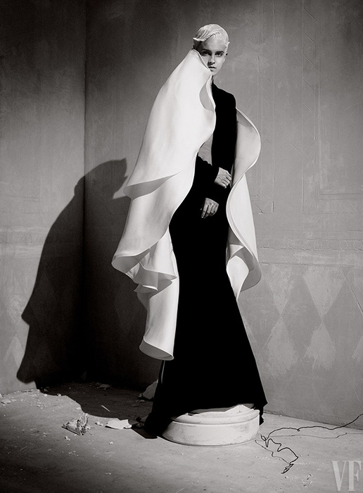 В мартовском выпуске журнала Vanity Fair вышел большой материал об актрисе Эмме Уотсон. На обложке номера — Уотсон в платье Oscar de la Renta, а на фотографиях к интервью актриса позирует в том числе с полуобнаженной грудью, прикрытой вязаным кейпом из последней коллекции Burberry. Съемку сделал фешен-фотограф Тим Уолкер, который работает с Vogue и журналом W.