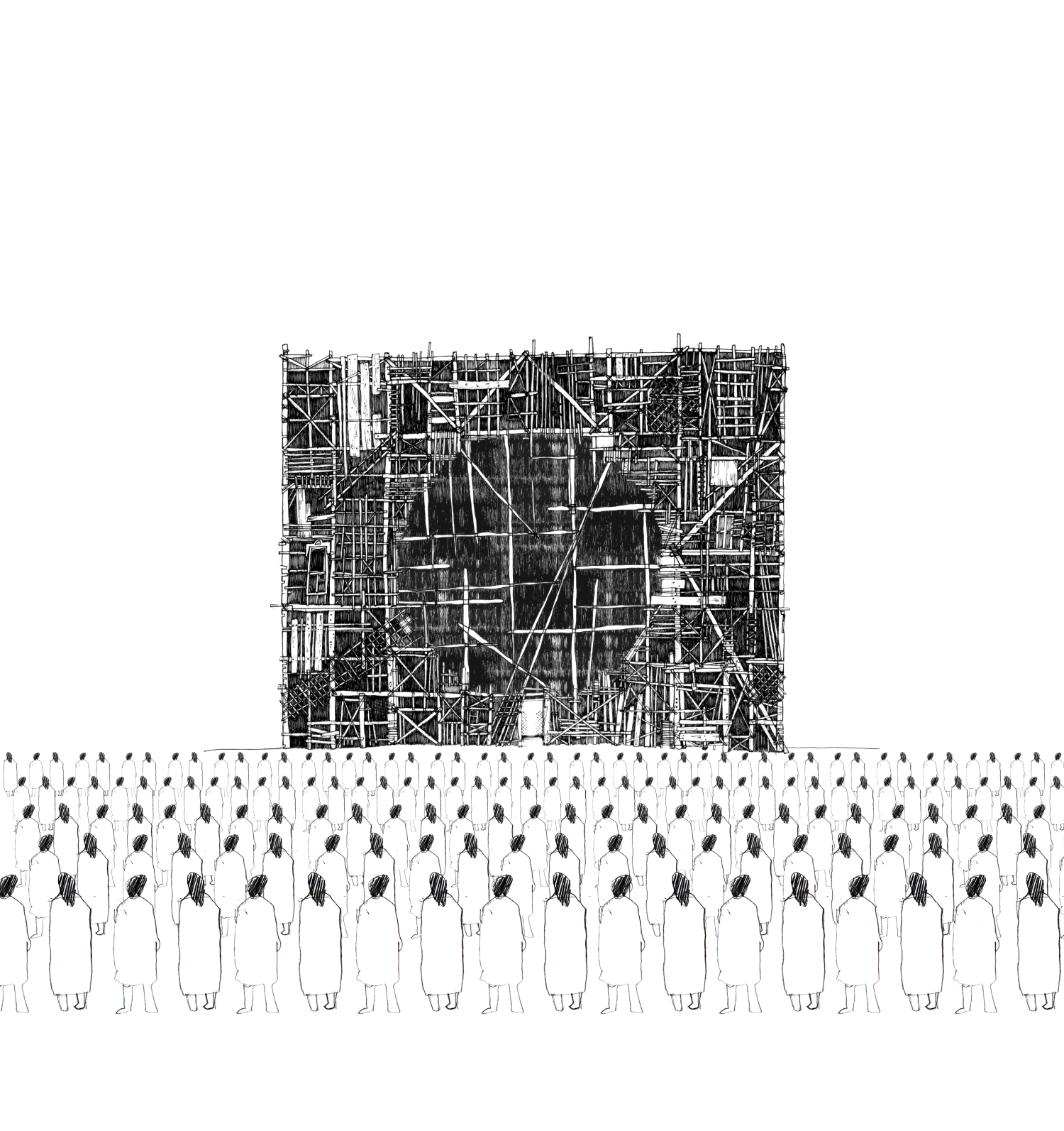 Стену и собираются сжечь во время празднования — объект «Четвертая стена» от студии «NOYD короткий метр». Это 19-метровый куб, собранный из всего, что было в округе: из сена, старых веток, предметов быта (дверей, досок, ящиков). Его строительство заняло три месяца.