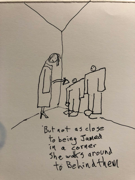 Напомним, по сюжету «I Love It» Канье Уэст и Lil Pump в гигантских копиях вещей Yeezy, напоминающих костюмы для ростовых кукол и персонажей онлайн-игры Roblox, преследуют по длинному коридору американскую актрису и комика Адель Гивенс, которая по сравнению с ними выглядит как великанша. На схематичных рисунках Джонза можно увидеть примерное расположение героев видео в кадре и краткое описание финала клипа.