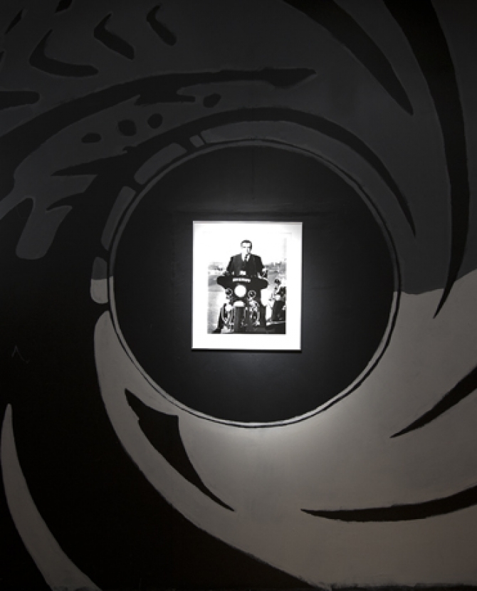 У проекта Bond by GQ сегодня есть два повода: 50-летие бондианы и грядущая 26 октября премьера 23-й по счету ленты "007 координаты "Скайфолл". Бонду сегодня отдано все пространство галереи на Солянке: на первом этаже установили видеоинсталляцию с титрами из 22 фильмов об агенте, а спустившись по лестнице вниз, попадаешь в темную комнату с мигающими красными лампами — там создана тотальная инсталляция, гость которой невольно становится соучастником происходящего. Нижний этаж галереи напоминает советский бункер времен холодной войны и Карибского кризиса, там же — саунд-инсталляция со зловещей главной музыкальной темой бондианы.
