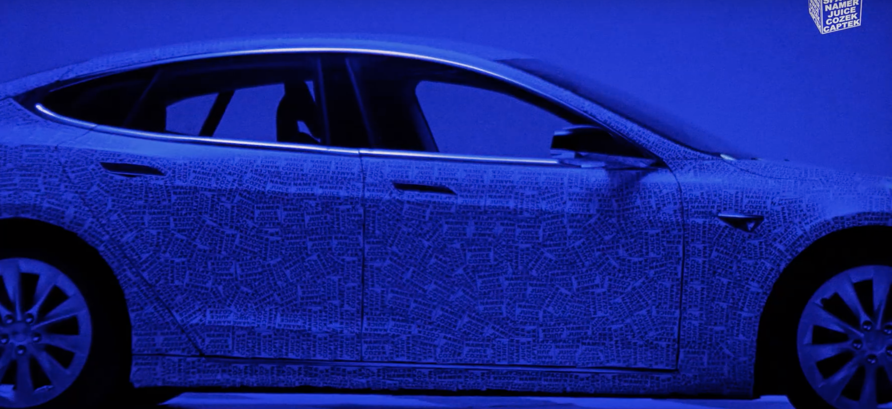 Рокетбанк и участники московского творческого объединения A.D.E.D. кастомизировали электрокар Tesla Model S. Художники заклеили автомобиль своими фирменными стикерами, на которых напечатаны имена членов коллектива Spacer, Namer, Juice, Cozek, Captek, а режиссер Александр Худоконь снял короткое видео о необычной коллаборации.