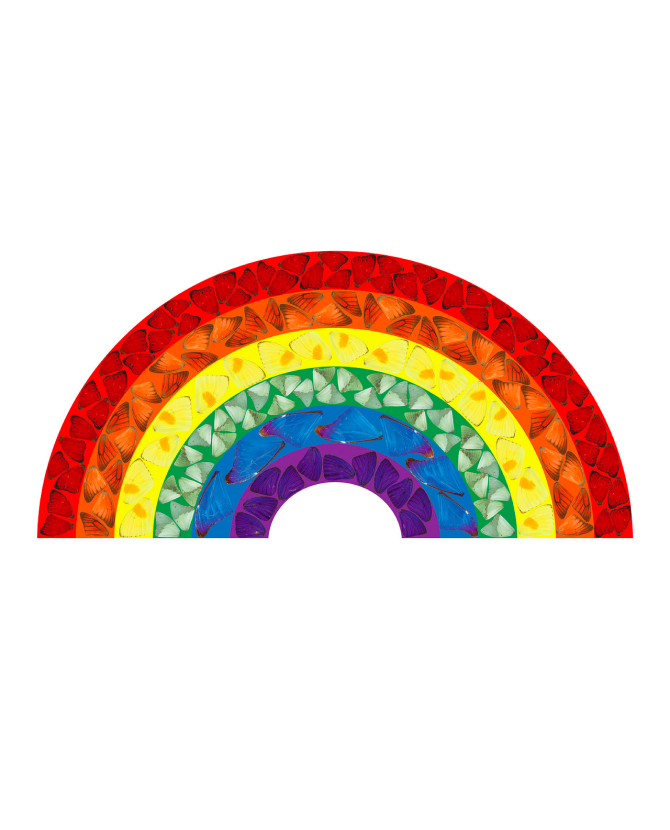 Британский художник Дэмиен Херст создал благотворительное произведение искусства, посвятив его борьбе с пандемией коронавируса и глобальному карантину. Он представил работу под названием «Butterfly Rainbow», на которой изображена радуга, состоящая из крыльев бабочек.