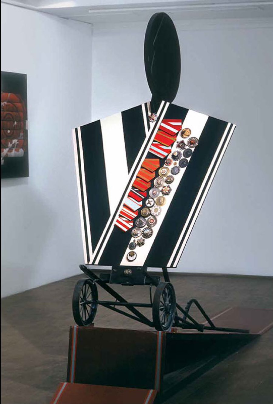 В каком-то смысле Борис Орлов — художник-реалист, описывающий систему функционирования механизмов работы изнанки идеологии. Несколько иную оптику на исключенный объект мы встречаем в работах Сергея Шеховцова, обращающегося к низовым образам массовой культуры и обыденности. Выполненные из «неблагородных» промышленных материалов, часто покрытые хаотичными граффити, обманчиво легкие произведения Шеховцова кажутся незавершенными.