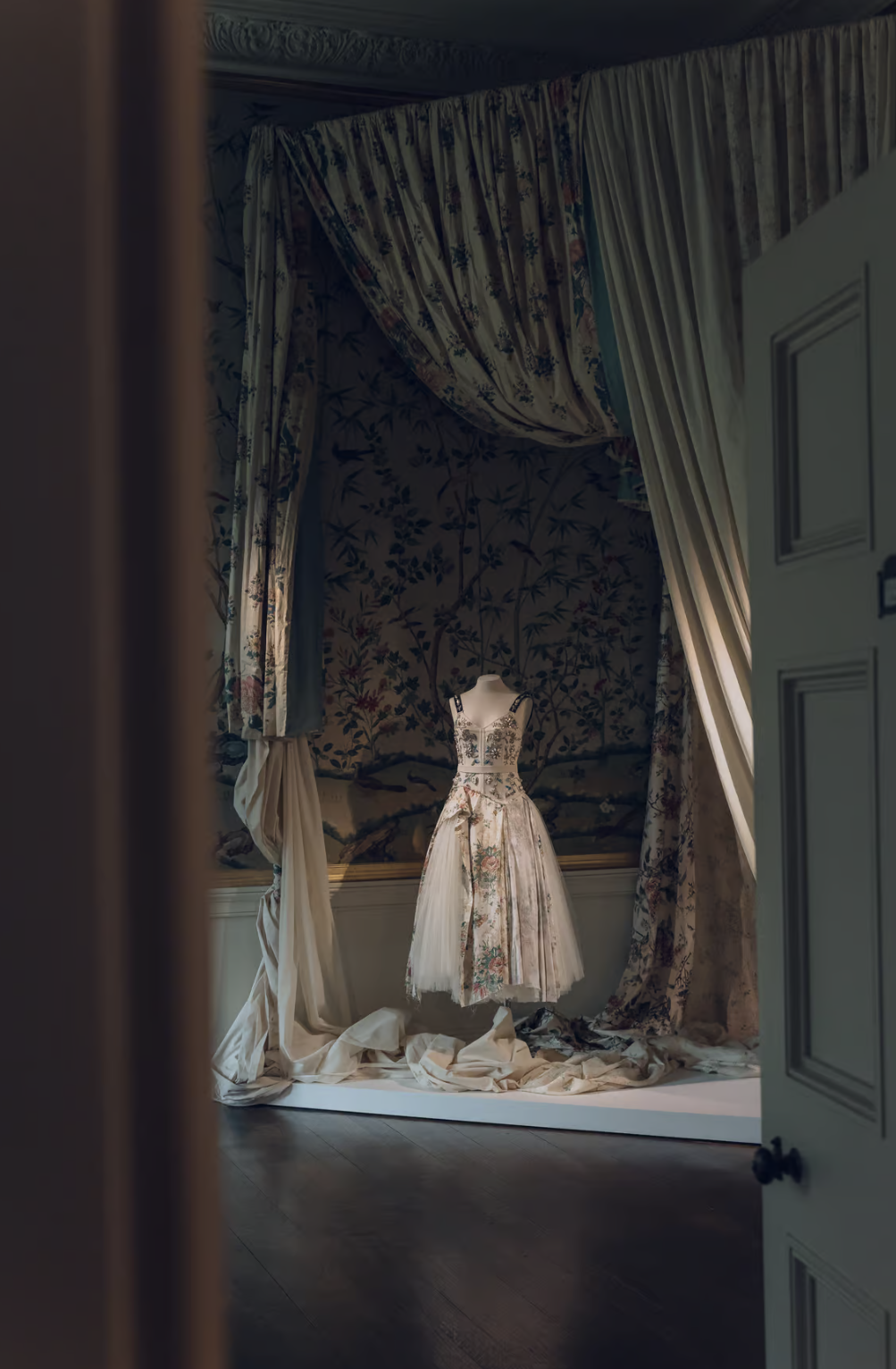 Как отмечает бренд в пресс-релизе, «повествования между главным героем экспозиции и Эрдемом переплетаются между собой». Аксессуары и другие предметы гардероба Деборы сочетаются с изделиями из новой коллекции, создавая диалог настоящего и прошлого. Выставка проходит в Чатсуорт-хаусе в Дербишире — одном из самых пышных «домов-сокровищниц» Англии, который был главной резиденцией герцогов Девонширских из семейства Кавендишей. Экспозиция продлится до 20 октября.