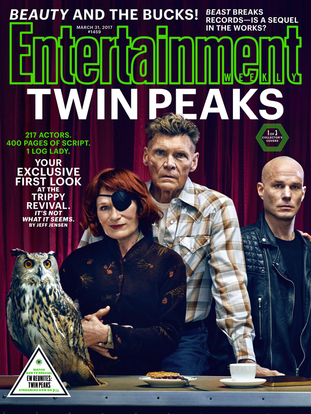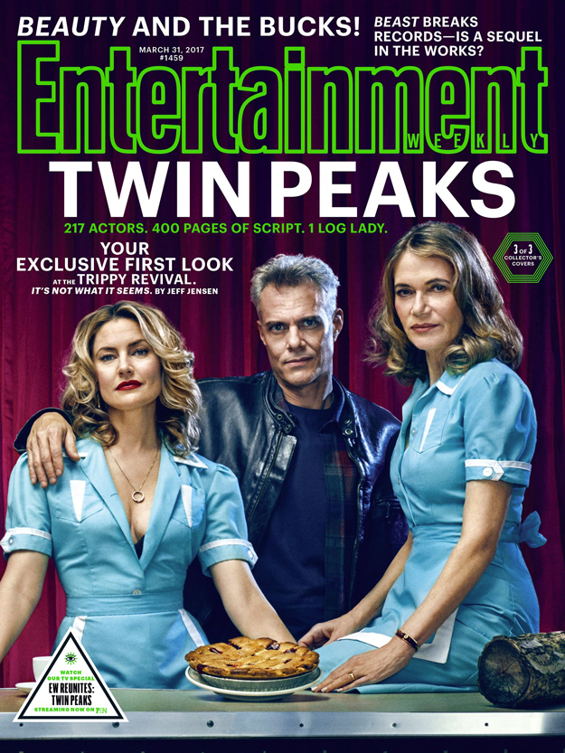 Свежий номер американского еженедельного журнала Entertainment Weekly вышел с тремя разными обложками, для которых снялись актеры из сериала Дэвида Линча «Твин Пикс», новый сезон которого стартует в мае.