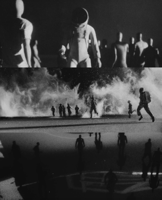 Главным героем ролика, действие которого разворачивается в странном постапокалиптическом мире, стал астронавт, окруженный безликими людьми.