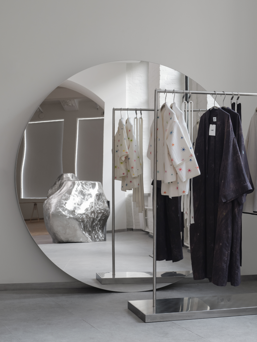 Пространство Gallery откроется выставкой художника Владимира Чернышева «Система координат». Куратором выступила галерея Sample. Специально для марки Владимир разработал принты для трех лимитированных кимоно. На выставке можно посмотреть эскизы и другие работы, созданные для бренда.