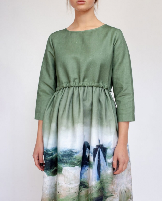 В нее вошли льняные и хлопковые платья и сумки, украшенные известными полотнами художника. На вещах можно увидеть картины «Какой простор», «Бурлаки на Волге», «Яблоки», «Запорожцы», «Толстой».