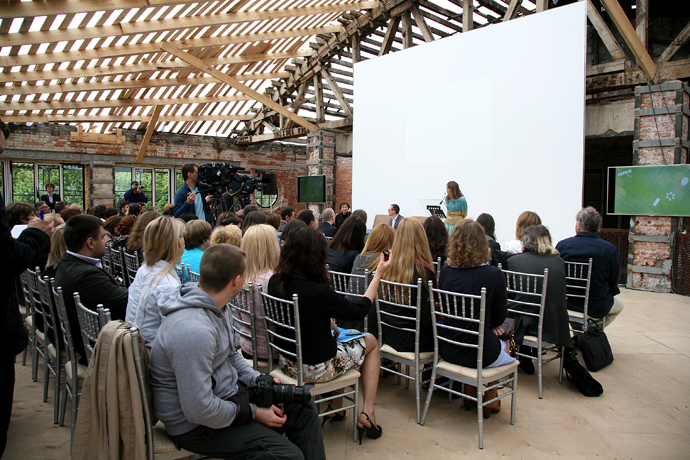 Центр современной культуры "Гараж" начнет свою работу осенью 2012 года, открыв первые выставки во временном павильоне в парке Горького. На пресс-конференции, которая прошла сегодня в строящемся офисе "Гаража", модель временного здания представил его автор — японский архитектор Шигеру Бан, а на вопросы о выставочной деятельности и летней программе ответила основатель ЦСК "Гараж" Даша Жукова вместе с создателем журнала Artguide и директором "Гаража" Антоном Беловым.