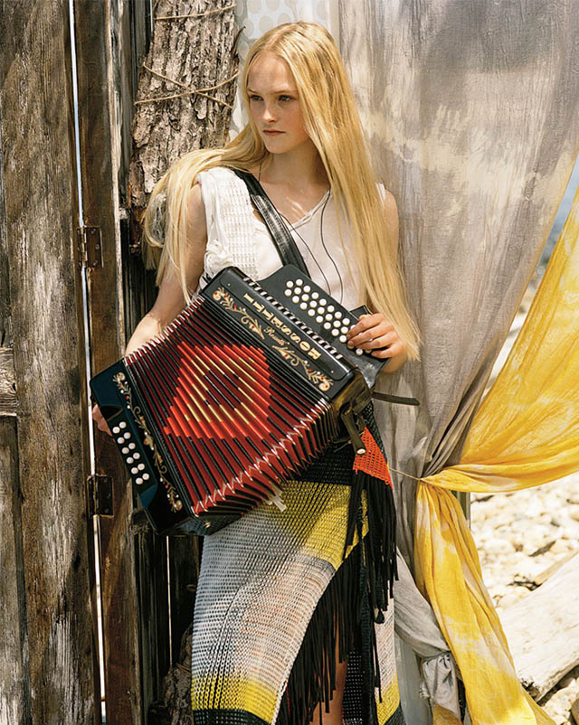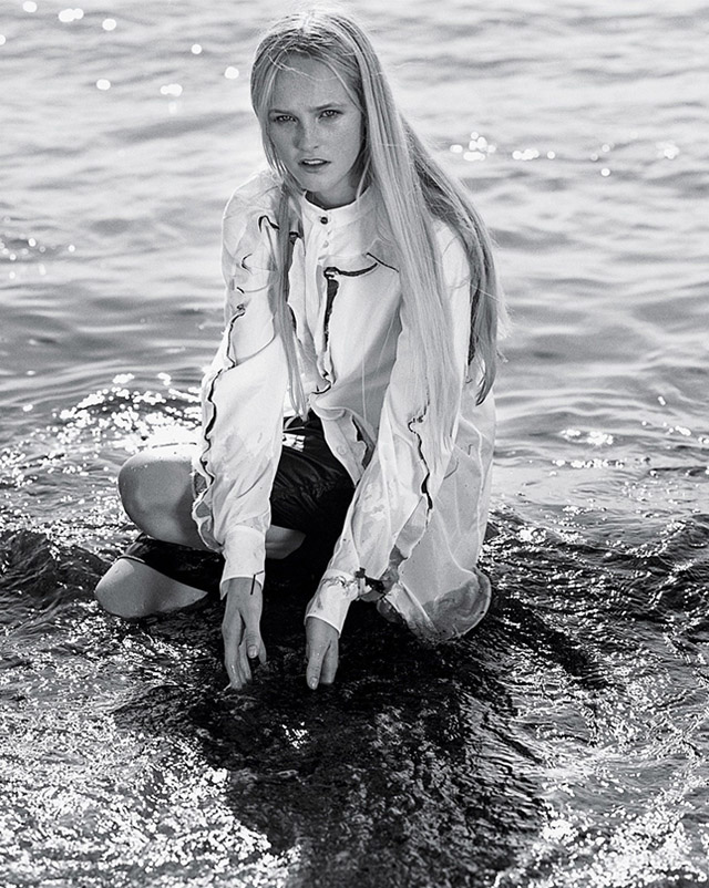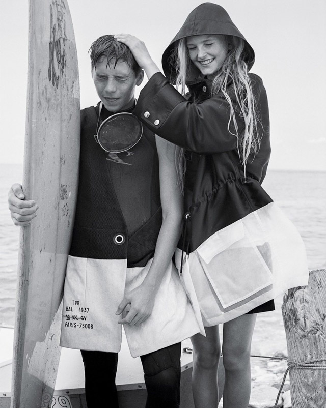 Второй же журнальной съемкой Бруклина стала фотосессия для T Magazine — его партнершей на площадке оказалась модель Джин Кэмпбелл. Фотографии Брюса Вебера, как цветные, так и черно-белые, напоминают "Королевство полно луны" Уэса Андерсона. Только мальчик с девочкой уже выросли и учатся в старшей школе. Пара из Бруклина и длинноволосой блондинки Джин получилась, надо отметить, невероятно трогательная.