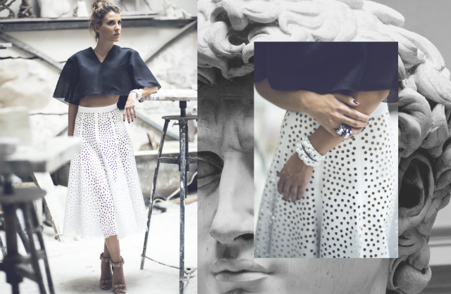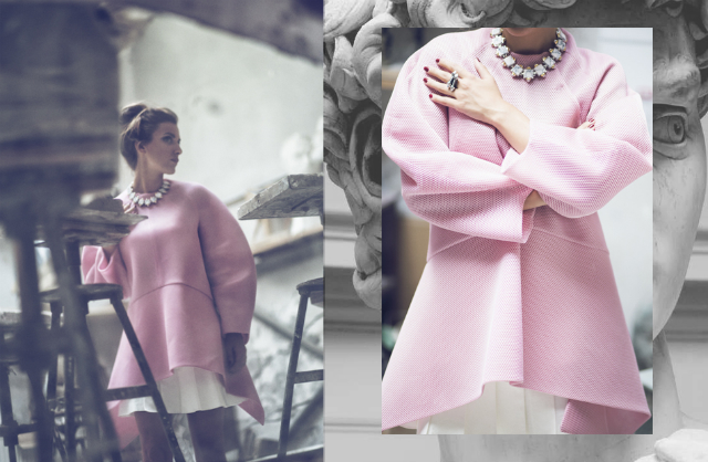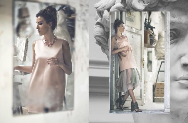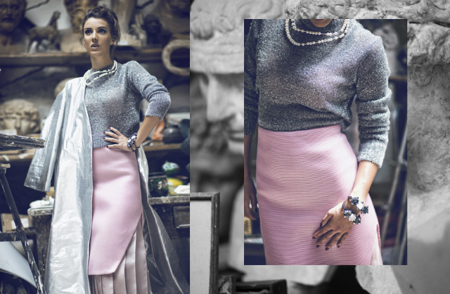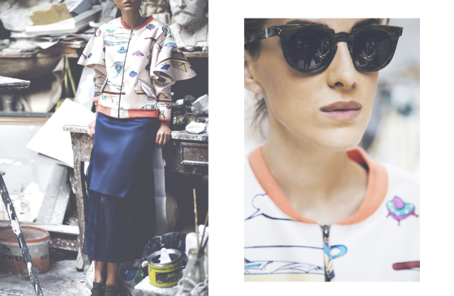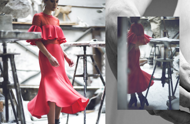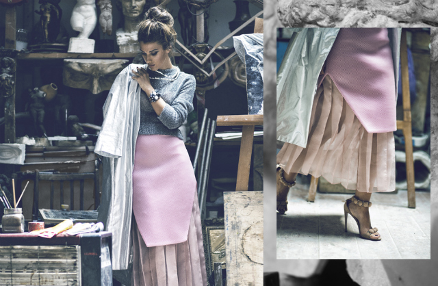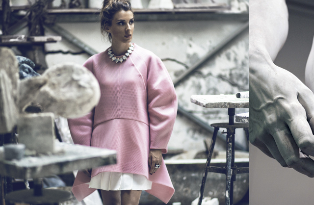 Каждый, кто учится в Грузии на дизайнера, из академии выходит готовым художником, так что скетчам и эскизам молодых выпускников и студентов удивляются все зарубежные члены жюри конкурса Be Next. Поэтому вещи из осенне-зимних коллекций грузинских дизайнеров Gola Damian, Teyo, Eshvi и Atelier Kikala в художественном беспорядке мастерской скульптора выглядят совершенно органично. А главной героиней съемки стала Лика Эвгенидзе, киновед, актриса, телеведущая и художник.