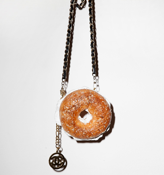 В новом проекте под названием Bread bags представлены мини-сумка Chanel на цепочке, которая сделана из бейгла с сыром филадельфия, рюкзак — из пышного багета с маком, а трапециевидная сумка Dior украшена тостами с огурцом, луком и сыром, и, пожалуй, самый изысканный вариант — сумочка Coach из половинки бейгла с лососем на ремешке из сиреневого меха.