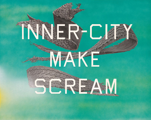 Новая серия работ продолжает эту эстетику: на одной из них мы видим порванный диванчик, на другой — обрывки автомобильных покрышек, которые будто развеваются на ветру. Несмотря на красочность, картины кажутся меланхоличными. Надпись, сделанная на одной из них, лишь подтверждает это впечатление: "Внутренний город заставляет кричать". Эд Рушей играет как визуальными, так и словесными символами американской поп-культуры, представляя на суд зрителя синтез изображения и слова.