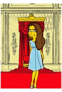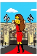 Создавая серию "симпсонизированных" изображений королевских особ, Александро Паломбо попытался увековечить узнаваемый стиль герцогини Кембриджской. Художник отобрал лучшие образы принцессы Кейт и превратил будущую королеву Англии в "желтого человечка". Впрочем, даже в образе персонажа из "Симпсонов" Кейт Миддлтон удается сохранять элегантность. Мультяшная принцесса позирует на фоне парадных ворот и интерьеров Букингемского дворца. На некоторых изображениях герцогиня Кембриджская появляется в обществе царственной свекрови, королевы Елизаветы II. Ее Величество находится в добром расположении духа и остается верна своему стилю — художник изобразил ее в классических шляпках с полями, платьях простого кроя и перчатках.