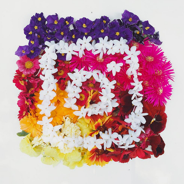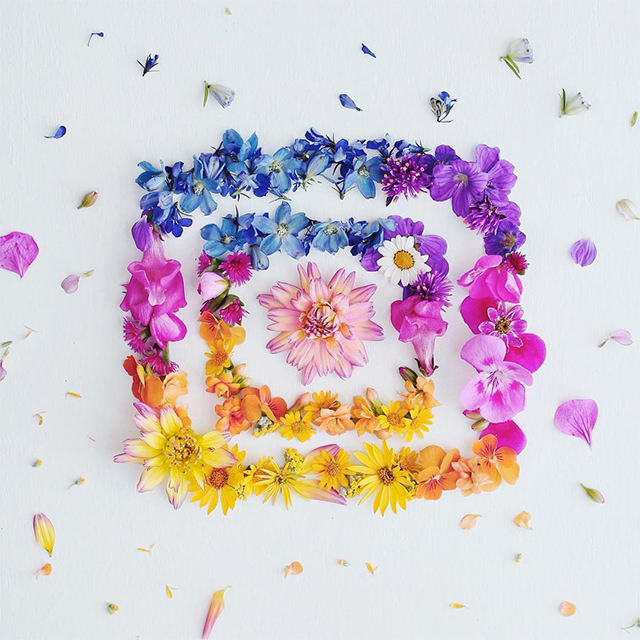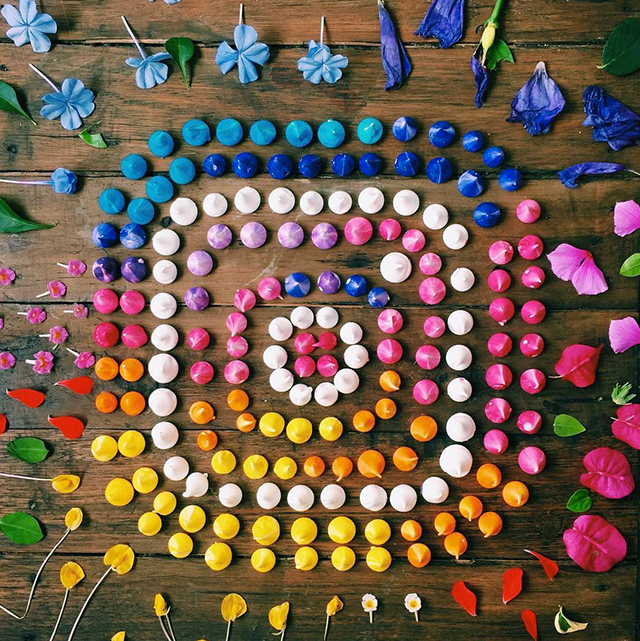 Художники и фотографы воспроизводят новую иконку из всего, что оказывается у них под рукой: от разноцветных булавок, цветов и еды до огромных отрезов ткани и всевозможных канцтоваров.
