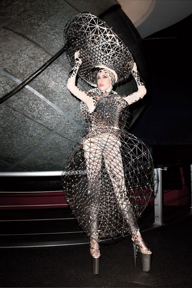 На обложке — кадр с закрытыми глазами. Леди Гага, стоящая на черном фоне, будто обрастает белым кружевом. На остальных фотографиях она запечатлена в привычных для себя безумных образах: платье из металлических конструкций поверх телесного боди, куртка-скафандр, огромная шуба из перьев, очки на пол-лица и сияющий костюм мотогонщика. Для многих эта съемка наверняка станет первой работой Терри Ричардсона, которая им понравится.