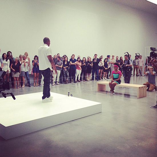 Выступление Jay-Z прошло в рамках съемки видео на песню Picasso Baby с его нового альбома Magna Carta... Holy Grail. Все происходящее в галерее Pace тут же попало в Vine, Instagram и другие социальные сети. Гости особенно навострили камеры, когда Марина Абрамович сама вышла с Jay-Z на одну сцену.