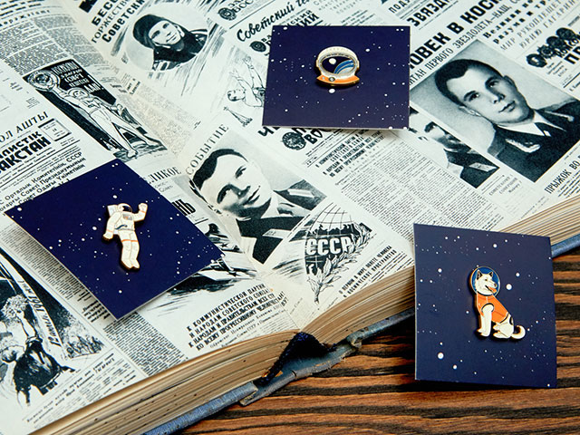 Сувенирный бренд Heart of Moscow — тот самый, что выпустил серию с русским авангардом, стремительно исчезнувшую из всех магазинов, так быстро ее раскупили, — останавливаться не собирается. На этот раз на очереди космос. 12 апреля, в День космонавтики и юбилей первого полета человека в космос, Heart of Moscow выпускает новую серию, получившую рабочее название 61-55-16. В этих трех цифрах — зеркальные позывные. В них отражаются год полета Юрия Гагарина, юбилейная дата и наш сегодняшний, 2016 год. Среди значков — главные герои и основные составляющие космической жизни. Сам космонавт, собака Белка, оказавшаяся на орбите еще раньше Гагарина, спутник, луноход, ракета и скафандр. В серию также вошли записные книжки и обложки для паспорта с архивными иллюстрациями журнала «Техника — молодежи» 50—70-х годов. 61-55-16 выполнена в стиле ретрофутуризма и показывает, каким будущее видели в прошлом, когда космос казался еще совсем непознанным.
