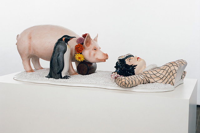 Где тонкая грань между аллюзией и плагиатом? Об этом в очередной раз заставляет задуматься неприятность, приключившаяся с Джеффом Кунсом в Париже. Художнику пришлось снять с выставки один из арт-объектов под названием Fait d'Hiver: скульптура изображает лежащую на снегу девушку, поросенка и пингвина. Название обыгрывает французское fait-divers, что значит "новости, происшествие". Игра слов довольно распространенная.