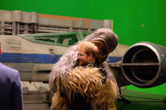 На память о встрече с Чубаккой, Люком Скайуокером (точнее, исполнителем роли Люка Марком Хэмиллом) и дроидом ВВ-8 у принцев осталась пачка фотографий, на которых они сражаются на световых мечах и теребят мех вуки. Потому что сохранять спокойствие рядом с реквизитом легендарной саги не под силу даже наследникам престола.
