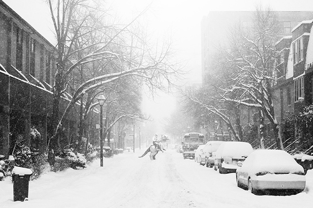 Если просматривать работы Томаса Дагга мельком, кажется, что это красивые, но вполне обычные черно-белые фотографии. Вот ряд двухэтажных домиков в пригороде, вот парень перебегает перекресток. Нужно приглядеться, чтобы увидеть на снимках реалии, позаимствованные фотографом из "Звездных войн": за спиной у молодого человека не рюкзак в виде зверюшки, а сам мастер Йода, из окна автомобиля виднеется космический корабль, а за забором местной дачи вовсе не неудачное чучело любимой собачки, а эвок. Окружающие не находят в таком соседстве ничего странного: на снимках мир "Звездных войн" стал частью повседневности.