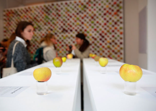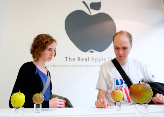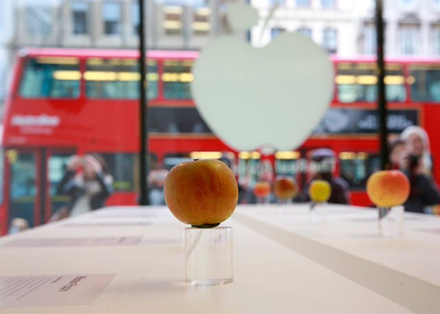 Новая инсталляция, в которой использована тысяча различных сортов яблок, выращиваемых в Соединенном Королевстве, также приурочена к ежегодному празднику сбора урожая. Как и в настоящем, в "реальном" Apple Store у каждого яблока своя прозрачная подставка и описание. Правда, протестировать понравившийся сорт на вкус, к сожалению, нельзя.