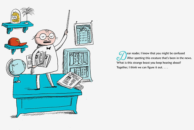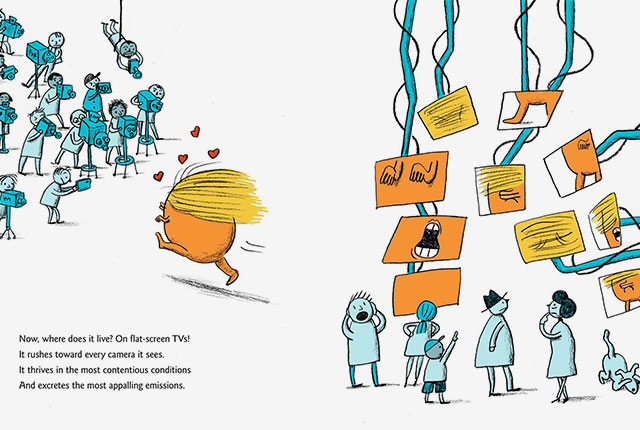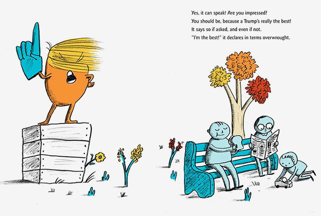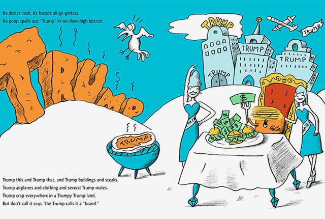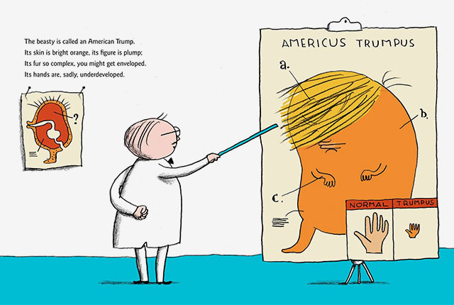 «A Child's First Book of Trump рассказывает детям о том, как себя вести и что делать, если вы случайно встретите Трампа в диком лесу», — именно так актер и презентовал свою шутливую книгу. А чтобы не быть голословным, прочитал и пару страниц из нее: «Этот зверек называется американский Трамп. У него ярко-оранжевая кожа, обильный мех и маленькие неразвитые ручки». У героя есть свое собственное латинское название — Americus Trumpus, живет он на экране ТВ и может говорить, предпочитая мотивирующее: «Я лучше всех». Книжку про Трампа в стихах можно уже купить на Amazon.com.