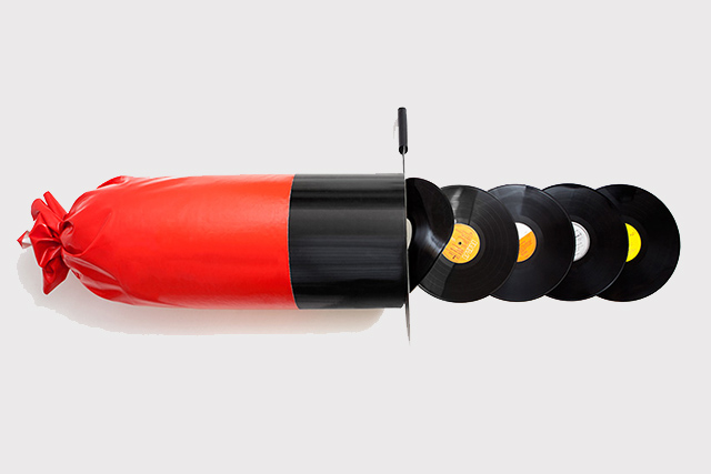 Когда Ринман создает собственную музыку, он часто обращается к винилу — в поисках семплов, которые можно превратить в новые композиции. На этот раз художник решил пересмотреть назначение виниловой пластинки — предмета, ставшего культовым, — и превратить ее в арт-объект, метафорически стирающий границы между носителем и содержимым. В результате этой метаморфозы получилась аппетитная музыкальная колбаса. Возможно, художник просто был голоден.