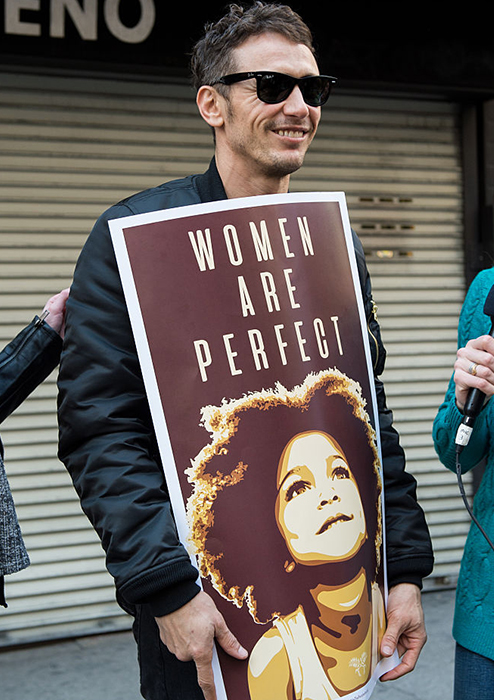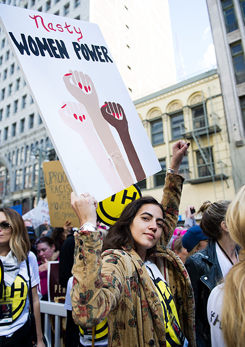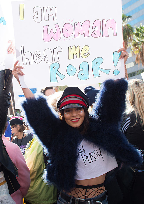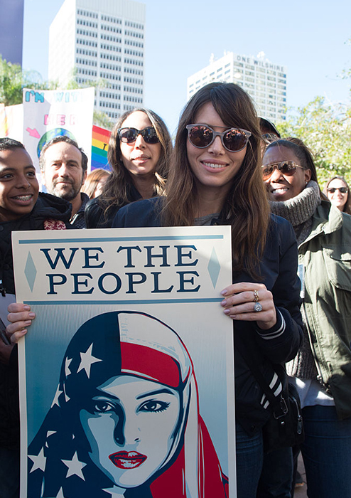 Предварительно власти оценивали количество потенциальных участников в «Женском марше» в Лос-Анджелесе в 100 тысяч человек, но в итоге на нем присутствовало более 750 тысяч. В числе звездных посетителей были также замечены Джессика Бил, Барбра Стрейзанд, Керри Вашингтон, Мэнди Мур, Хелен Хант, Розанна Аркетт, Джульетт Льюис и Моби.