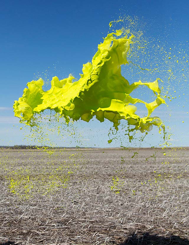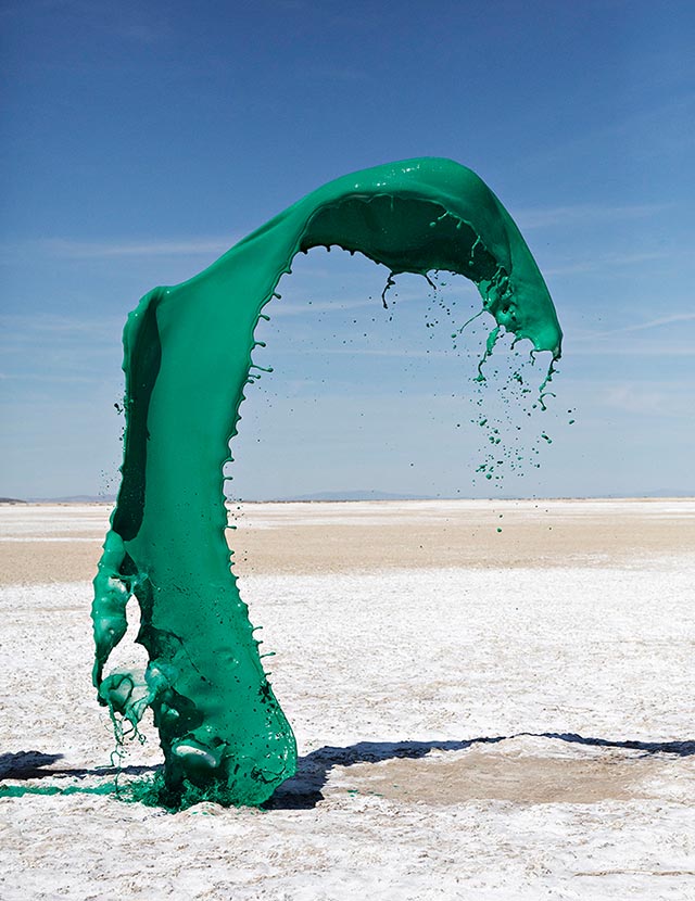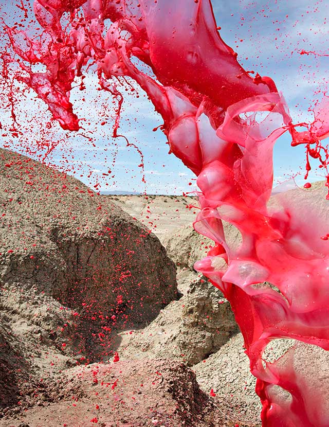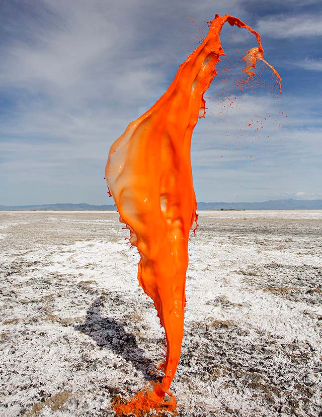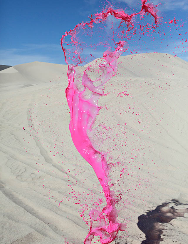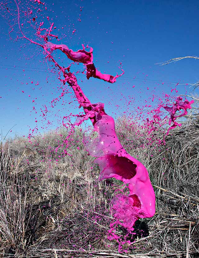 Кассандра Уорнер и Джереми Флото из фототандема Floto + Warner представили серию впечатляющих снимков под названием Colourant или "Краситель". Для создания проекта креативный дуэт остановился на богатом разнообразии пейзажей северной Невады. На фоне раскаленной пустыни или буйной растительности, автомобильных дорог или неподвижных камней они сотворили красочные скульптуры, подбрасывая в воздух разноцветную жидкость и "замораживая" момент камерой.