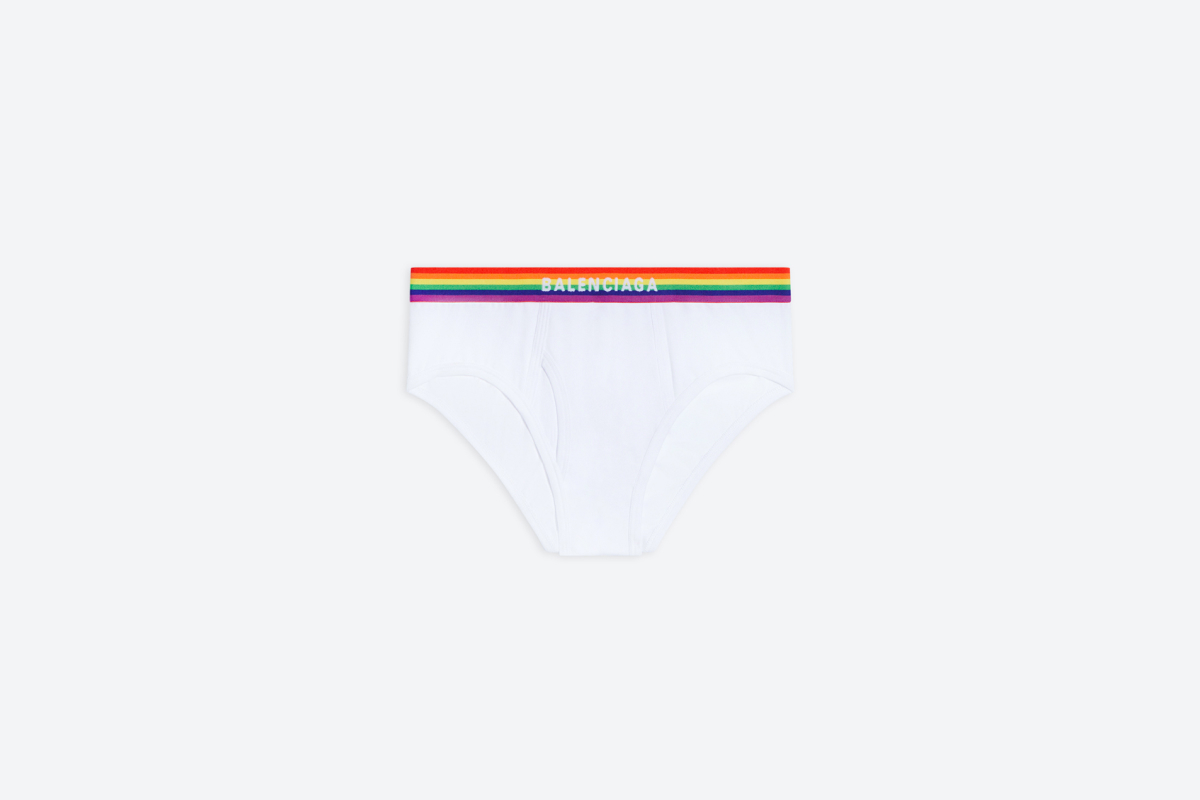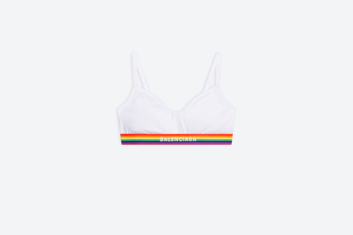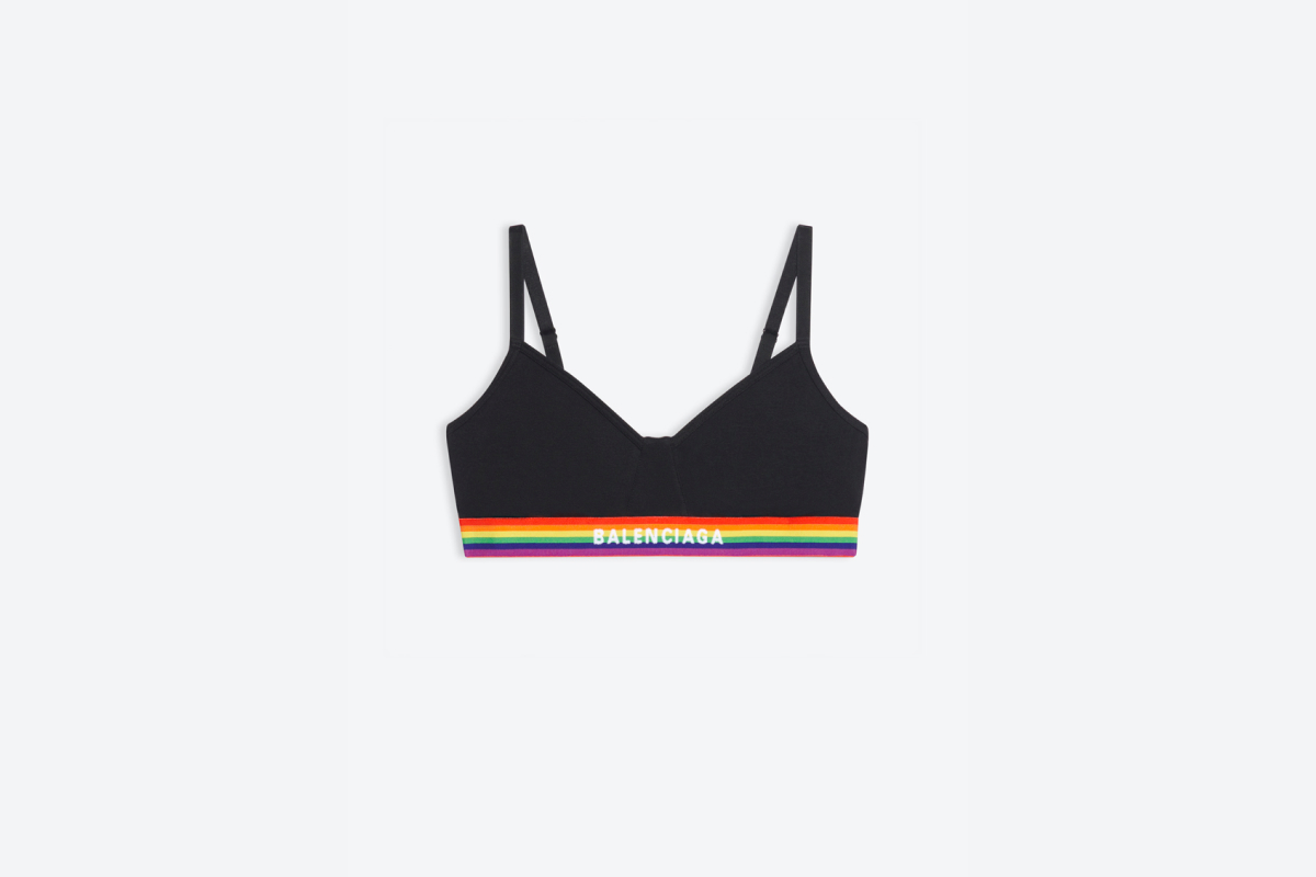 Balenciaga представил капсульную коллекцию, посвященную месяцу прайда. Для нее креативный директор Демна Гвасалия сделал футболки, свитшоты, худи и кепки со словом «gay» в стилистике логотипа американской марки Gap (целиком надпись выглядит как «Gay pride Balenciaga 2021»), а также ремни, бюстгальтеры и трусы с радужными полосками.