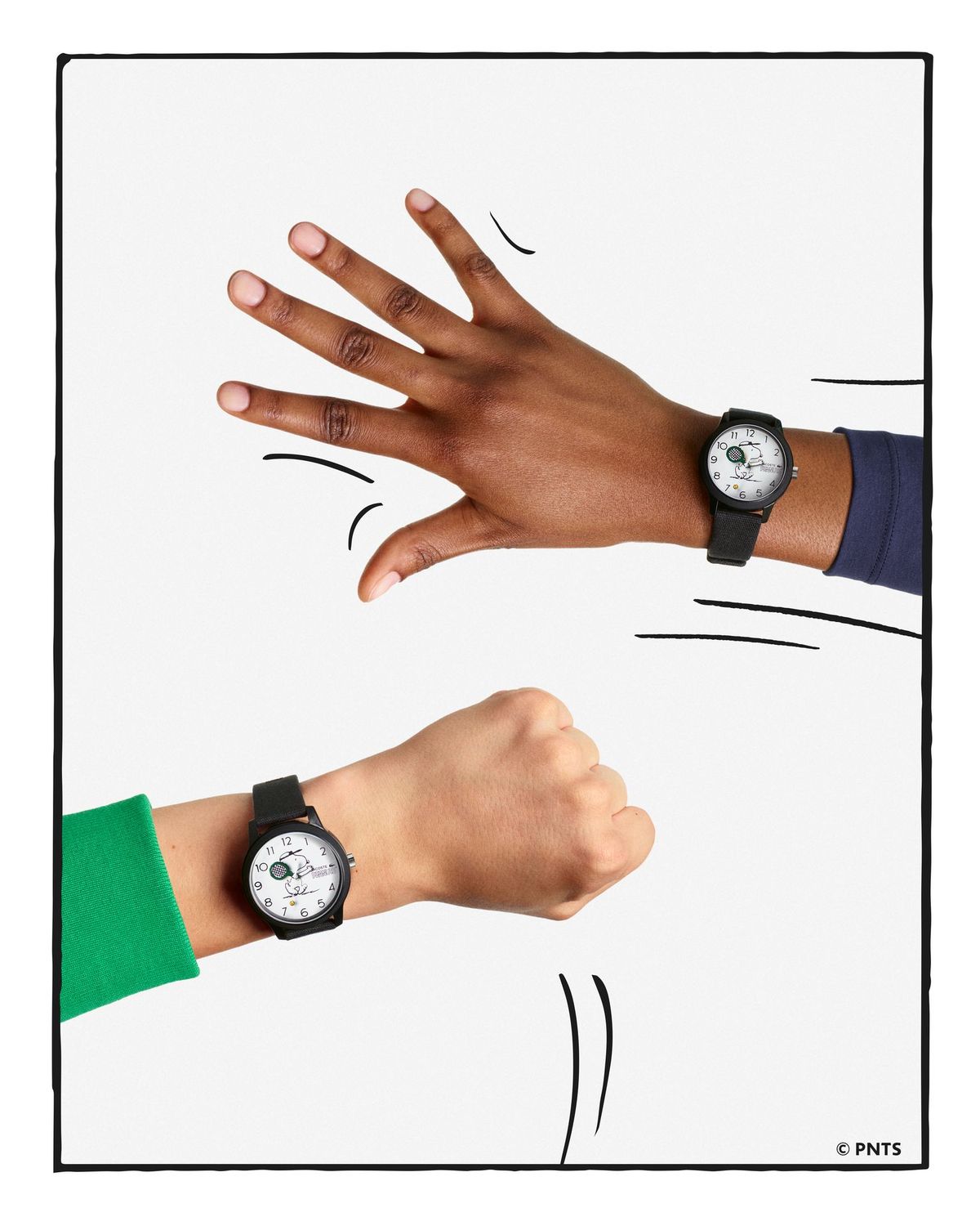 В коллаборации можно увидеть футболки, объемные свитшоты, худи, кеды, брюки, часы, нижнее белье, шарфы и шапки в ярких цветах с изображениями бигля Снупи, желтого птенца Вудстока, Люси, Марси, Франклина, Чарли Брауна и других героев. В коллекцию вошли вещи для мужчин, женщин и детей, которые передают идеи спонтанности, юмора, креативности и оптимизма.