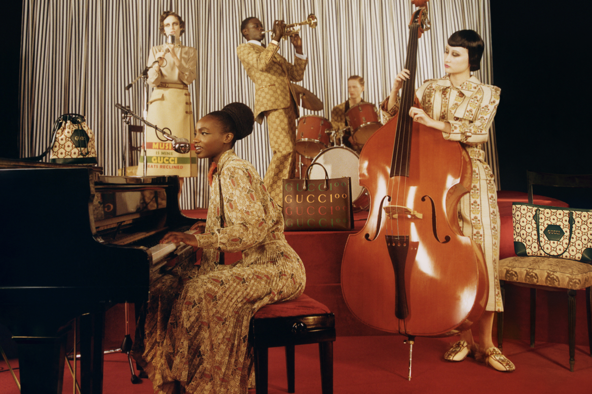 Gucci представил рекламную кампанию юбилейной коллекции, которой креативный директор Алессандро Микеле отметил столетие итальянского бренда. Она отражает разные музыкальные стили, которые были популярны на протяжении минувших десятилетий: джаз, диско, психоделический рок, j-punk, афробит, хип-хоп. На опубликованных кадрах модели позируют в соответствующих каждому течению образах.