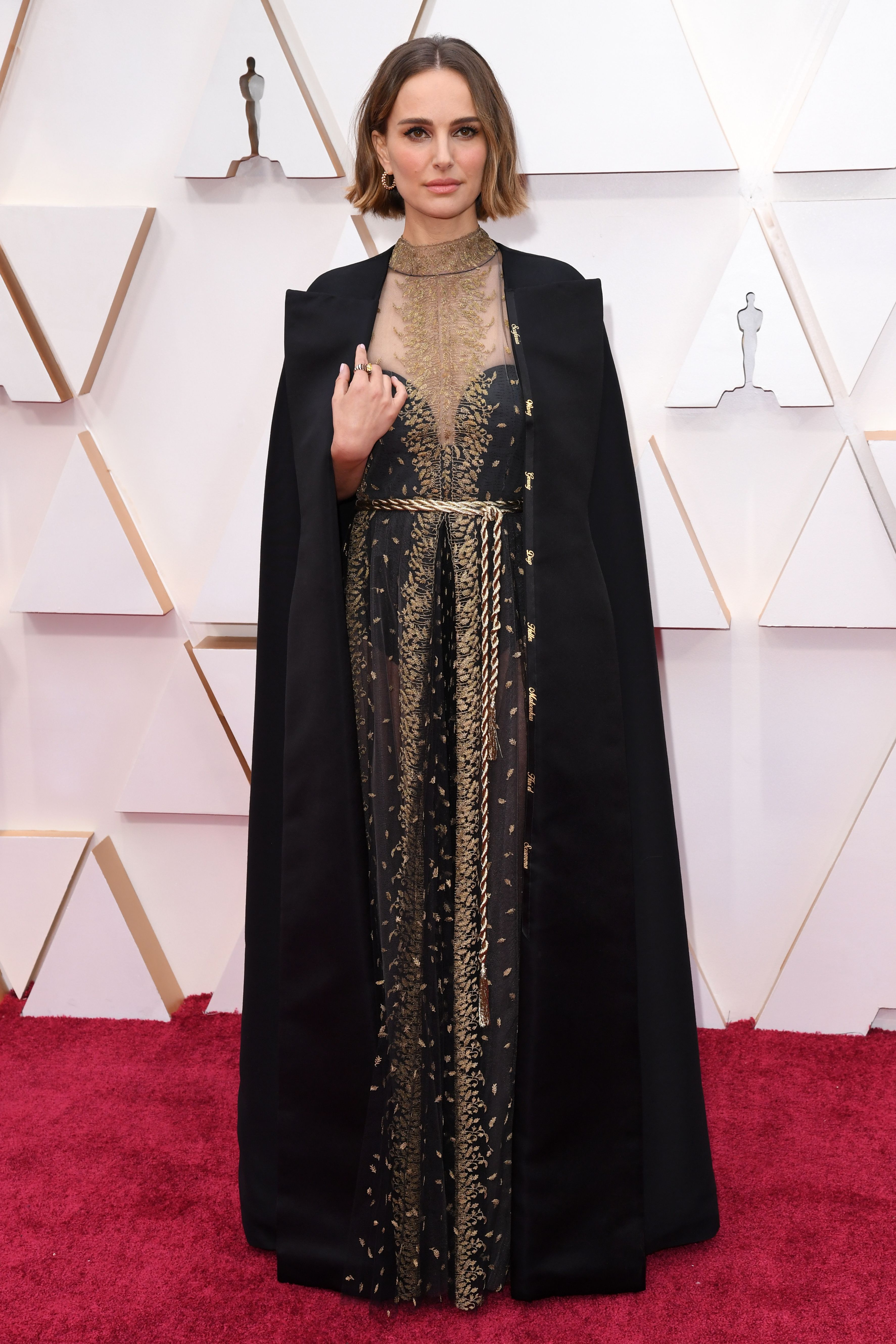 Актриса выбрала наряд Dior из полупрозрачного платья и накидки с фамилиями женщин-режиссеров, которые не получили номинации в этом году. Это Лорин Скафария («Стриптизерши» с Дженнифер Лопес), Лулу Ван («Прощание» с Аквафиной), Грета Гервиг («Маленькие женщины»), Мариэль Хеллер («Прекрасный день по соседству» с Томом Хэнксом), Мати Диоп («Атлантика»), Мелина Мацукас («Квин и Слим»), Альма Харрель («Лапочка») и Селин Сьямма («Портрет девушки в огне»).