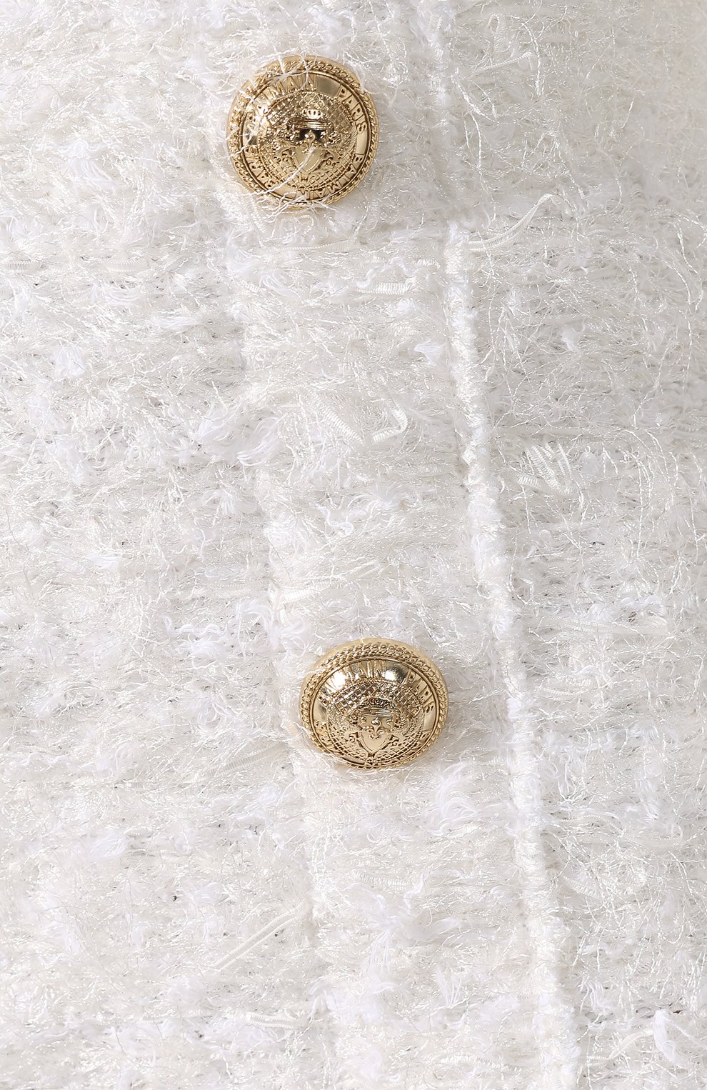 Пуговицы для Balmain всегда занимали важное место, создавая узнаваемый стиль бренда. Их история началась еще во времена Пьера Бальмена — именно он сделал популярными и модными крупные блестящие пуговицы, напоминающие те, что когда-то носили на своих мундирах военные.