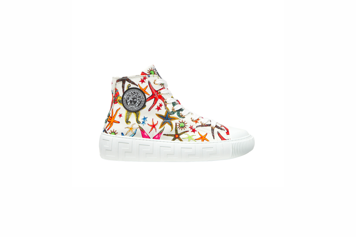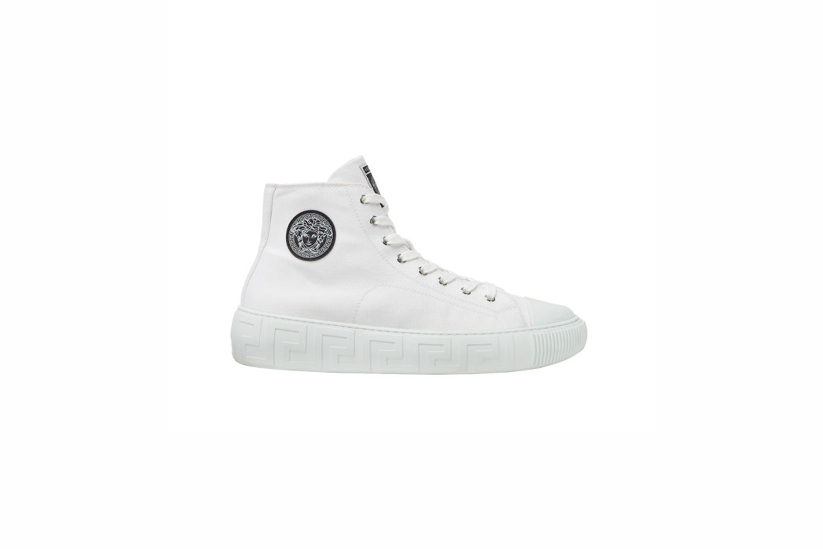 В новой весенне-летней коллекции Versace появились кеды Greca с толстой подошвой, украшенной фирменным меандровым орнаментом итальянского бренда. Доступны как лаконичные варианты из мягкой белой кожи и хлопкового канваса с черным патчем с изображением горгоны Медузы, так и более яркие с узором в морской тематике, который был придуман Джанни Версаче еще в 1992 году, или с барочным принтом.